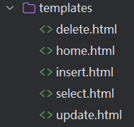 urlpatterns = [ path('select/', show_select), path('insert/', show_insert), path('delete/', show_delete), path('update/', show_update), ]