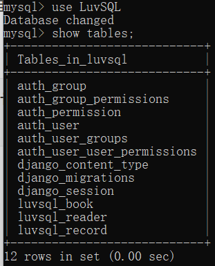 添加完表的设置之后,先回settings.py确认是否INSTALLED_APPS中是否已经添加'LuvSQL.apps.LuvsqlConfig'的条目,没有则添加。