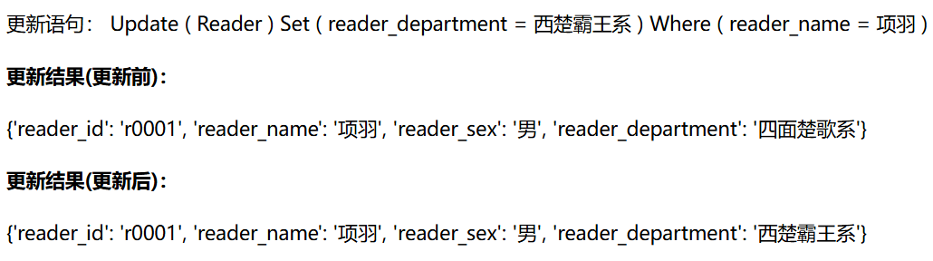 更新的话,我希望能有一个更新前后的对比,所以先执行一次查询操作,再执行更新操作,都返回表项,并列展示。