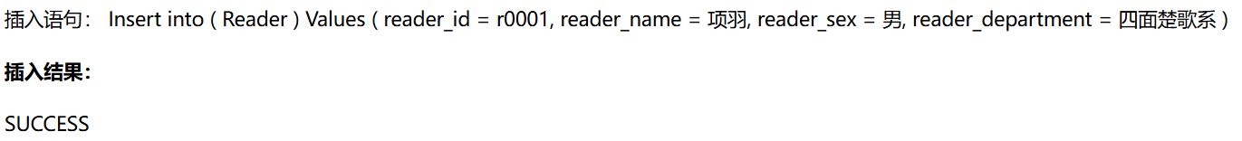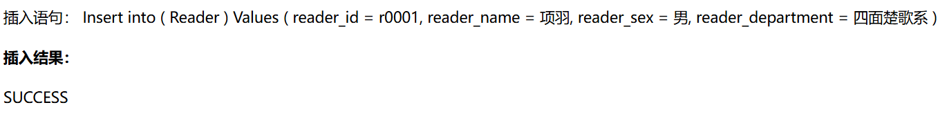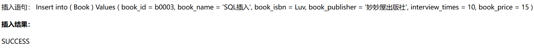 尝试一下,插入成功返回SUCCESS: