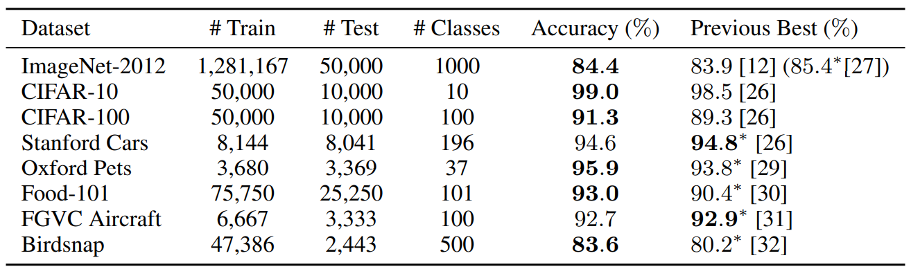 在其它数据集上,使用扩大最后一层参数的ImageNet进行微调,得到更优准确率。